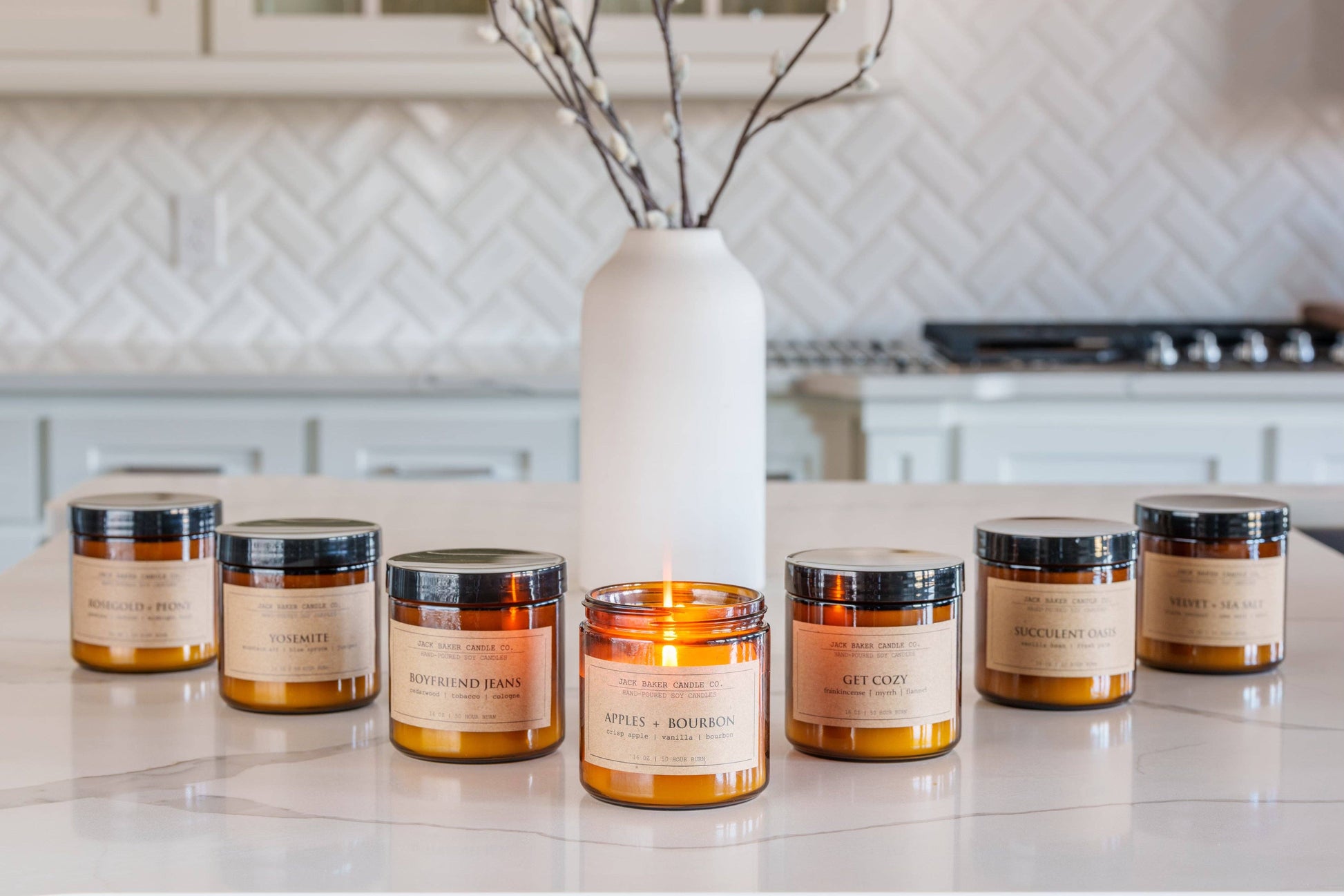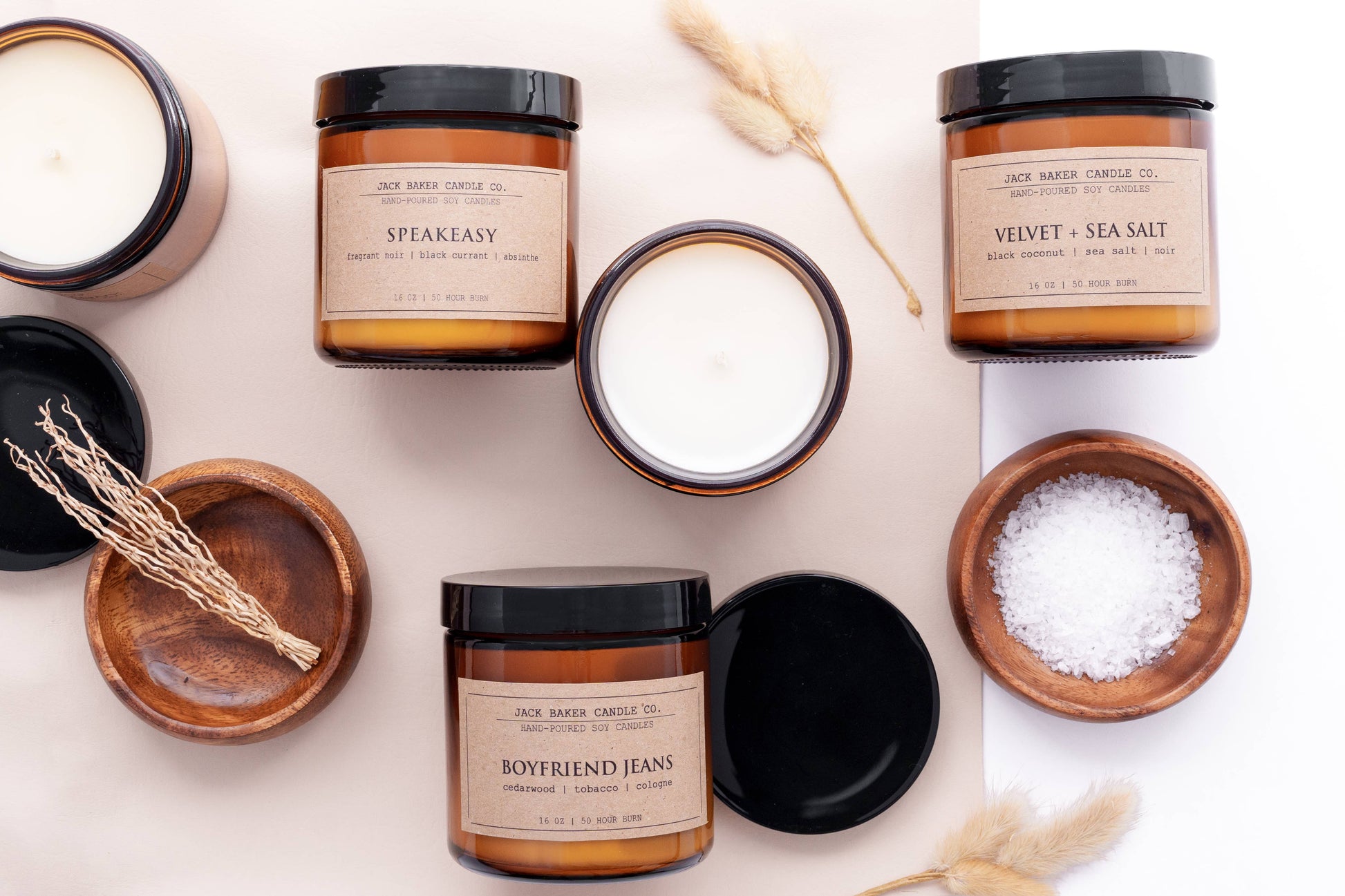 Jack baker candles are hand-crafted in small batches to deliver the highest quality scents and provide warm, even light. Our proprietary soy wax blend and signature essential oil-based fragrances balance exceptional aromas with a lasting burn that will drench any room.