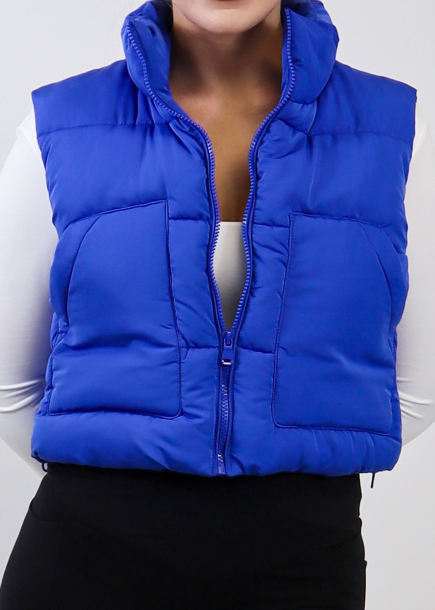 Introducing the Tell Me The Tea Puffer Vest, a stylish and warm addition to your wardrobe. It's short design and lightweight yet insulating material make this vest a perfect choice for cool days. Get cozy and look on trend with this must-have vest!